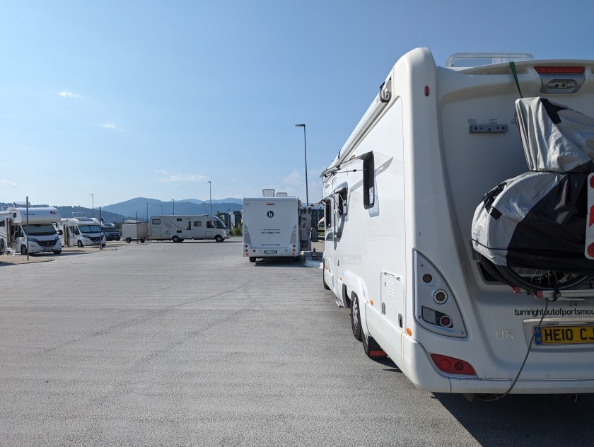 Detail: Dedicated parking area on non-match day in the stadium car park, directly on the cycle path and tram line. Includes a motorhome service point and plenty of lighting. There is an airport across the road, but it’s not an issue. We also found it very amusing watching a couple of lads in their cars virtually drag racing on a nearby road (not on the area itself).