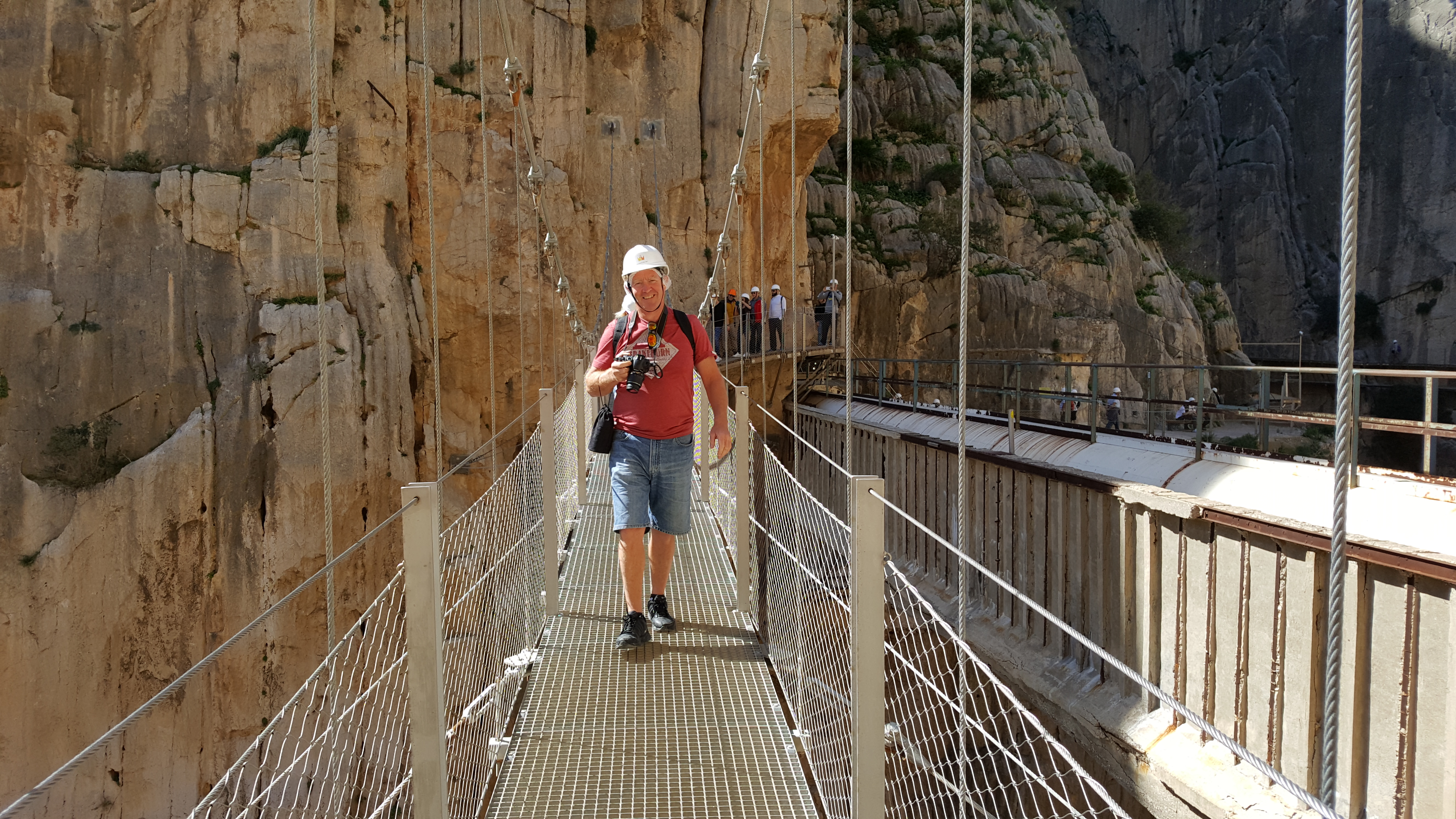 Calv striding across the wobbly bridge