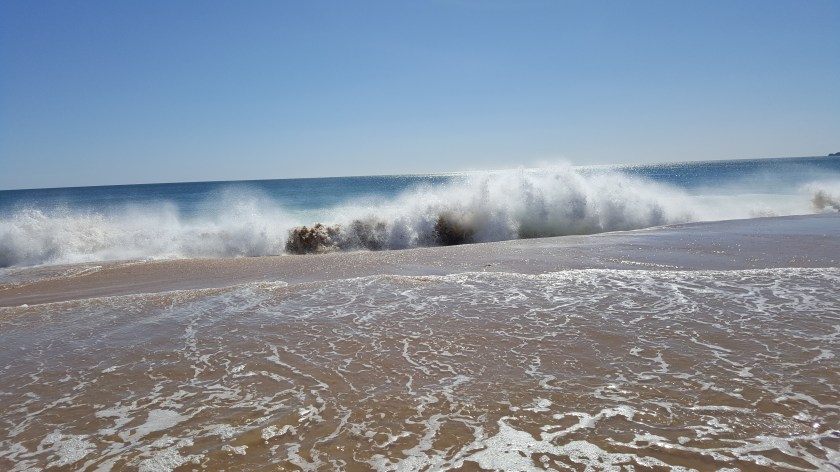Waves crashing on Alvor South beach